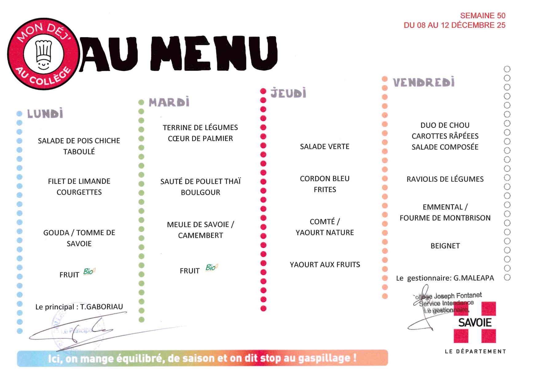 Menus de la semaine